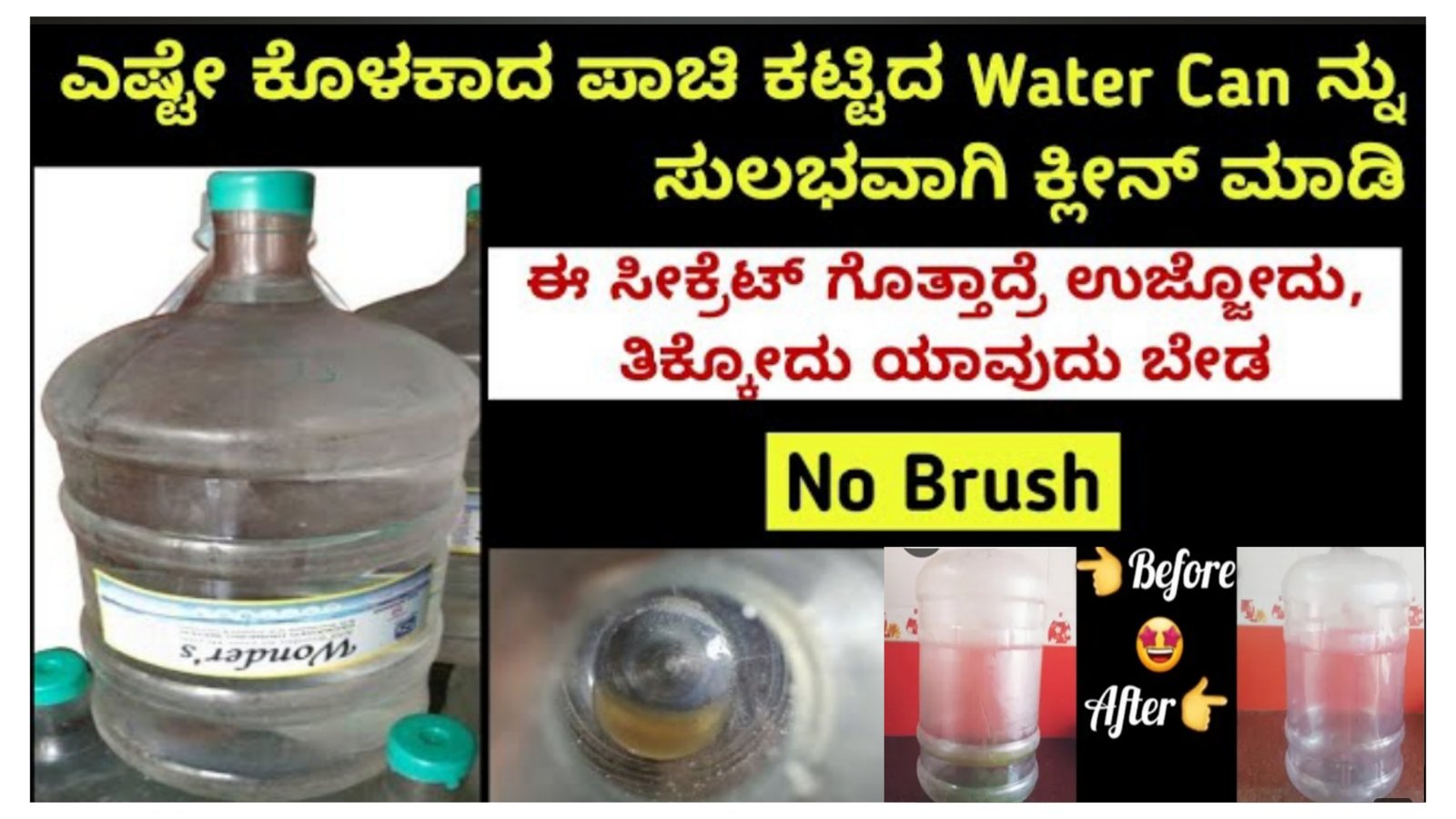 ನೀರಿನ ಕ್ಯಾನ್ ಒಳಗೆ ಬ್ರಷ್ ಹಾಕದೆ ತುಂಬ ಸರಳವಾಗಿ ಸ್ವಚ್ಛ ಮಾಡುವ ವಿಧಾನ.!